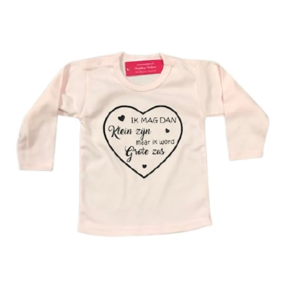 ‘’ik mag dan klein zijn maar ik wordt grote zus’’ dat staat te lezen op jou buikje.