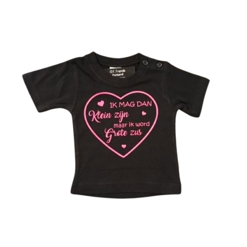 Aankondiging bekendmaking zwangerschap, tekst Ik mag dan klein zijn maar ik word grote zus Baby T-shirt zwart