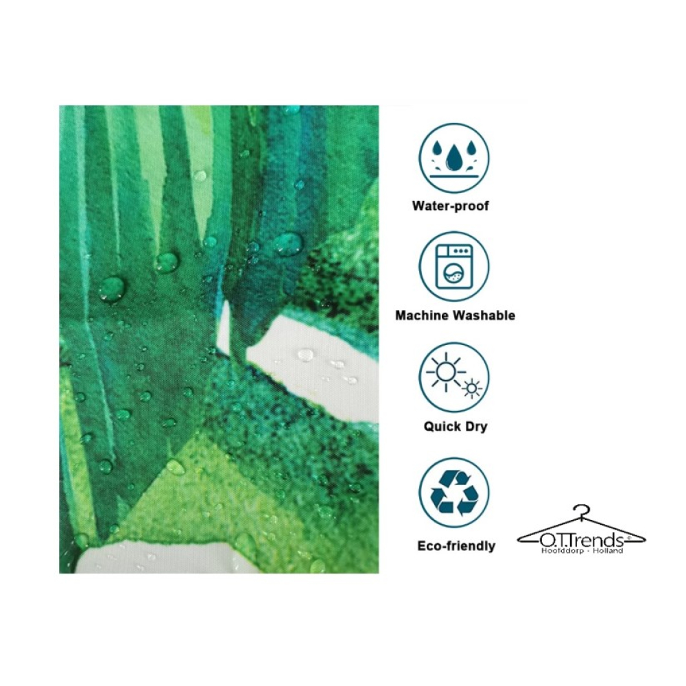 Het douchegordijn is gemaakt van stevig, waterafstotend materiaal dat helpt om je badkamer droog te houden. Bovendien wordt het gordijn geleverd inclusief ophanghaken, zodat je het direct eenvoudig kunt ophangen.