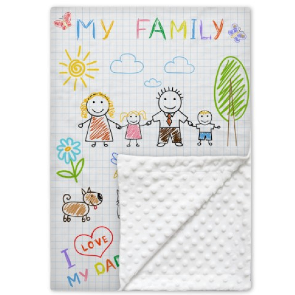 Een super zacht baby dekentje voor in de wieg/kinderwagen/Maxi Cosi of als omslagdoek tekening familie 1+1 gratis