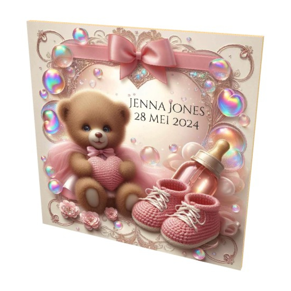 Geboorte tegeltje roze beertje