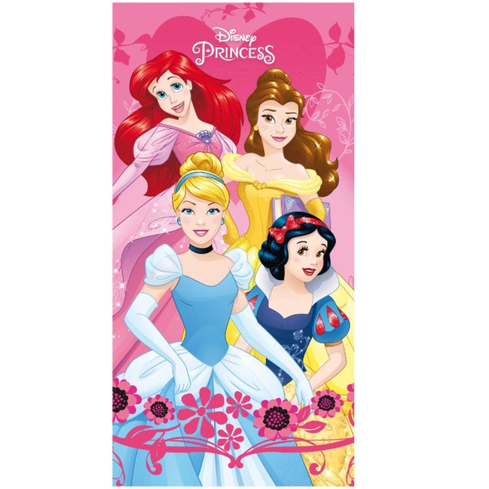 Disney Princess Strandlaken. Op dit mooie strandlaken staan maar liefst 4 Disney prinsessen! Dit strandlaken is perfect om mee te nemen naar de zee maar kan natuurlijk ook worden gebruikt bij het zwembad of op de badkamer. Perfect voor elke fan van de Disney prinsessen!